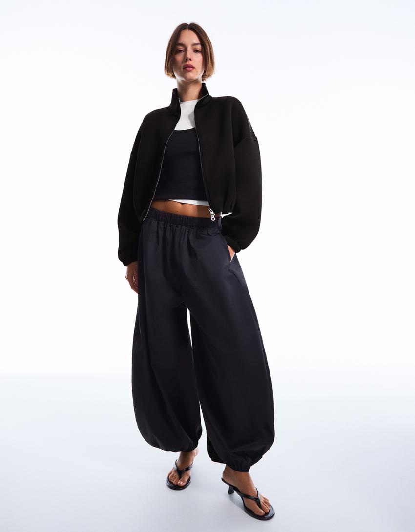 BALOM KESİM SENTETİK KAUÇUK KUMAŞ FERMUARLI SWEATSHİRT