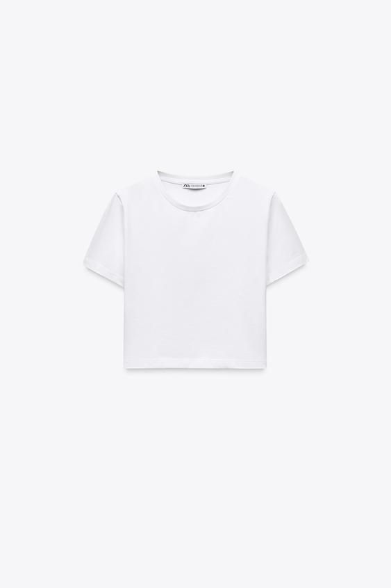 BEYAZ KISA KOLLU CROP T-SHIRT