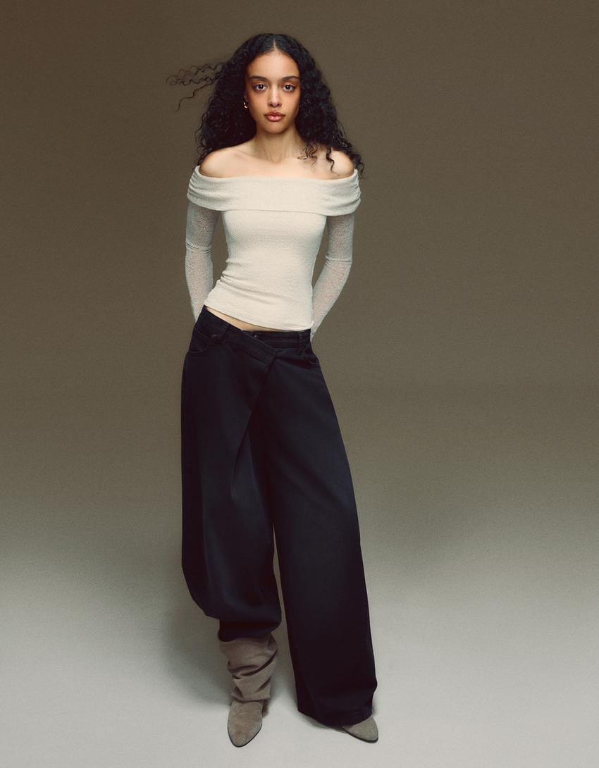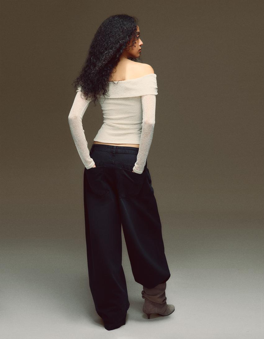 IŞILTILI RUSTİK BARDOT UZUN KOLLU TOP