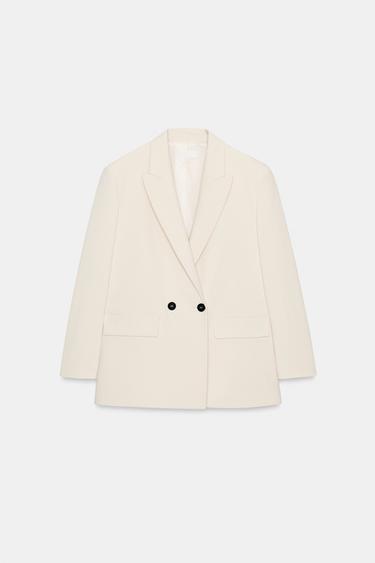 Uzun kollu ve vatkalı, katlı yaka oversize blazer. Kapaklı ön cepli ve önü kruvaze düğme iliklemeli.