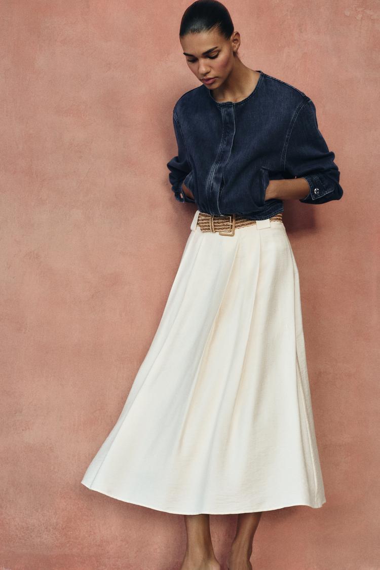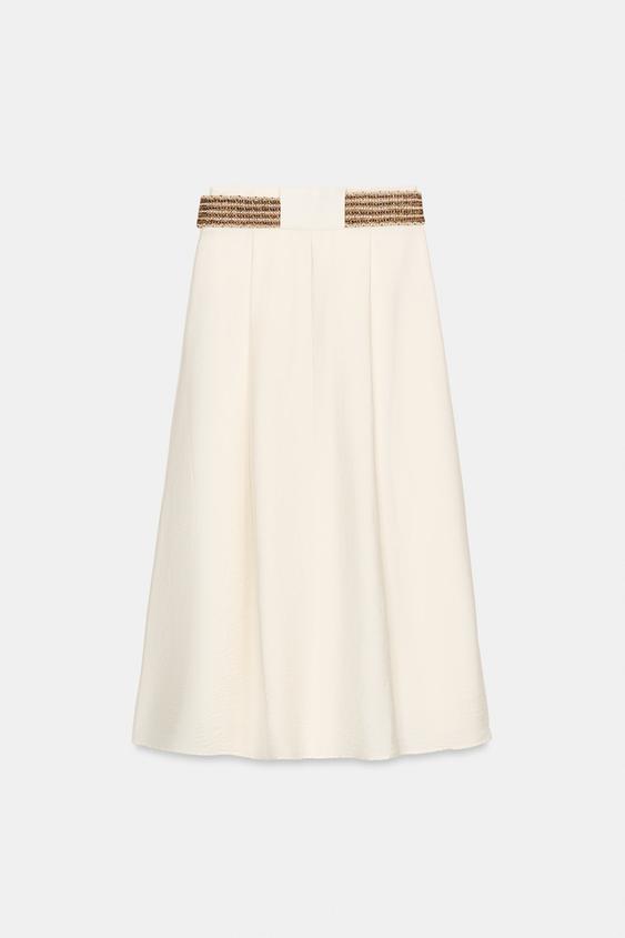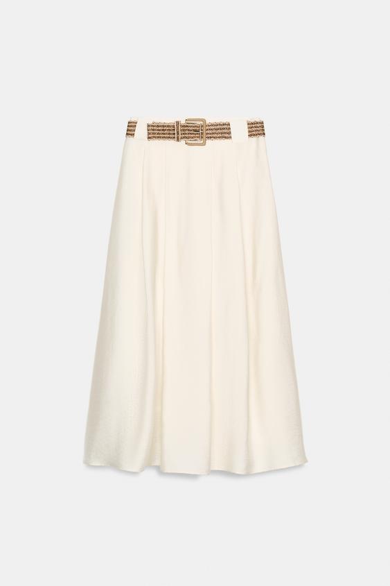 Yüksek bel, pensli ve kemerli etek. Astarlı. eva kesim. Gizli fermuarlı.