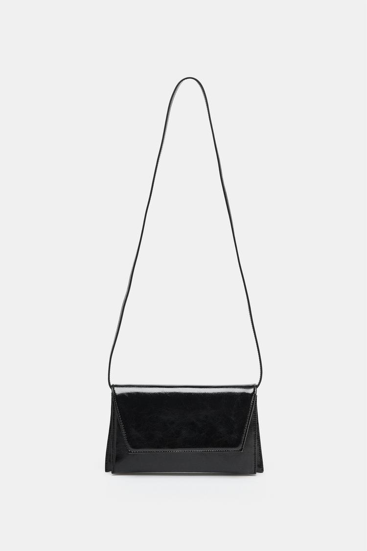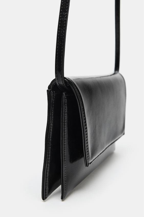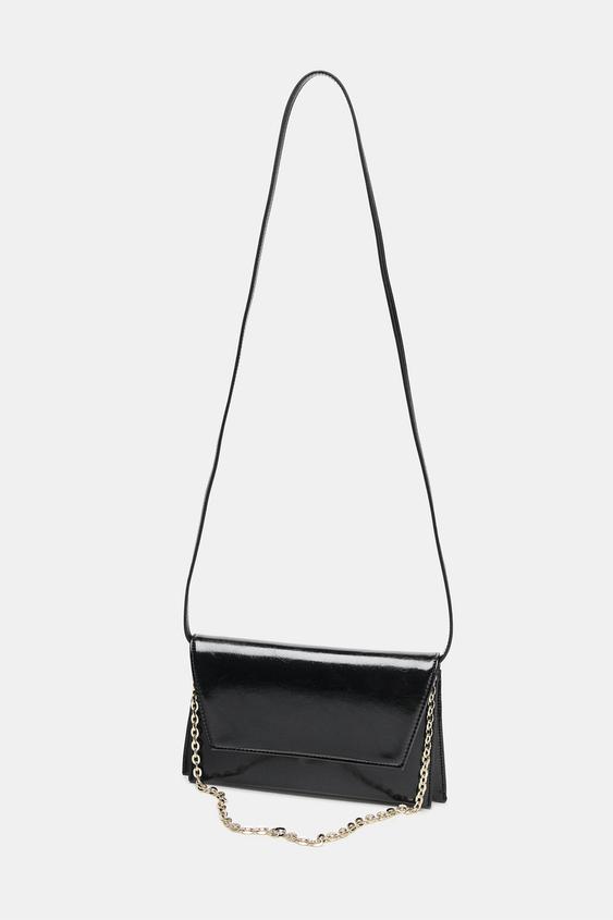 Parlak zarf çapraz askılı çanta. Biri zincir omuz askısı ve diğeri çıkarılabilir uzun çapraz askı olmak üzere çift askılı. Çift iç bölmeli. Kapaklı ve mıknatıslı düğme kapamalı.