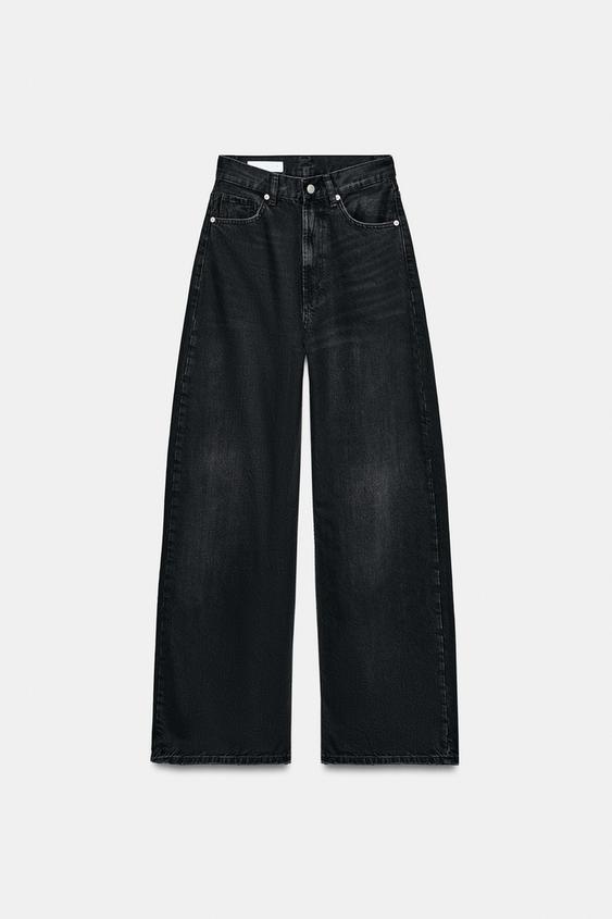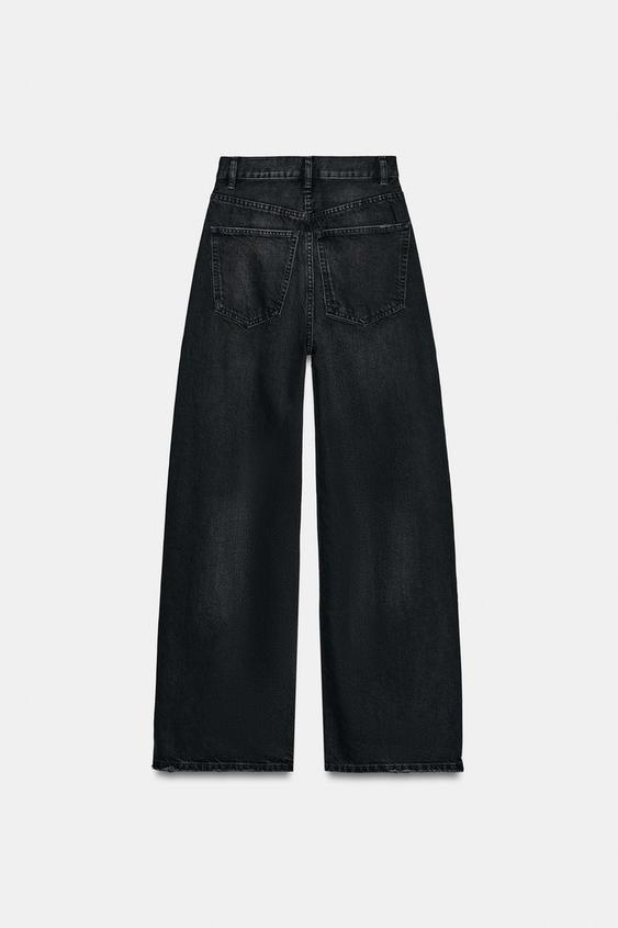 SİYAH RENK TRF YÜKSEK BEL EKSTRA GENİŞ PAÇA JEAN