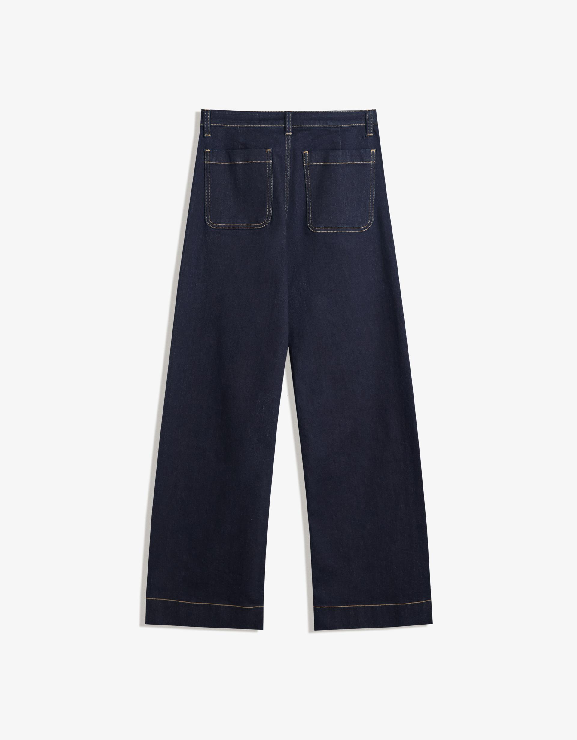YÜKSEK BEL DİKİŞSİZ CEPLİ GENİŞ PAÇA JEAN