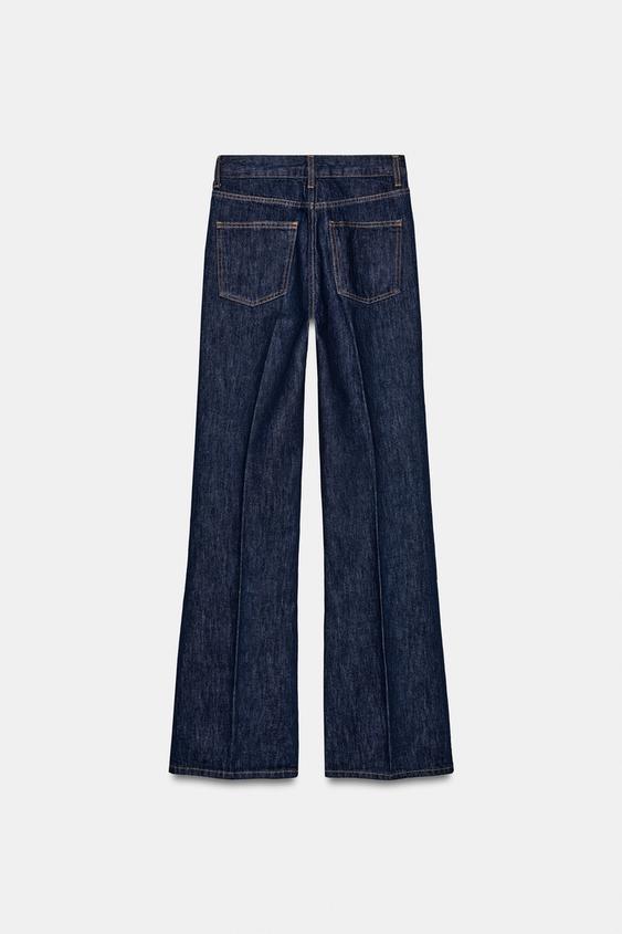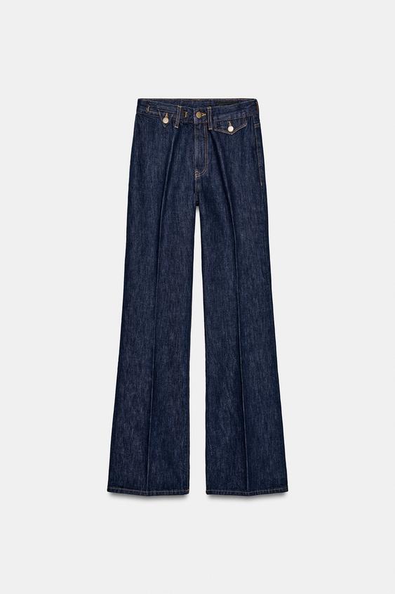 Yüksek bel, kemer köprülü jean. Ön cepler. Ütü izi detayı. Fermuar ve düğme iliklemeli ön kapama.